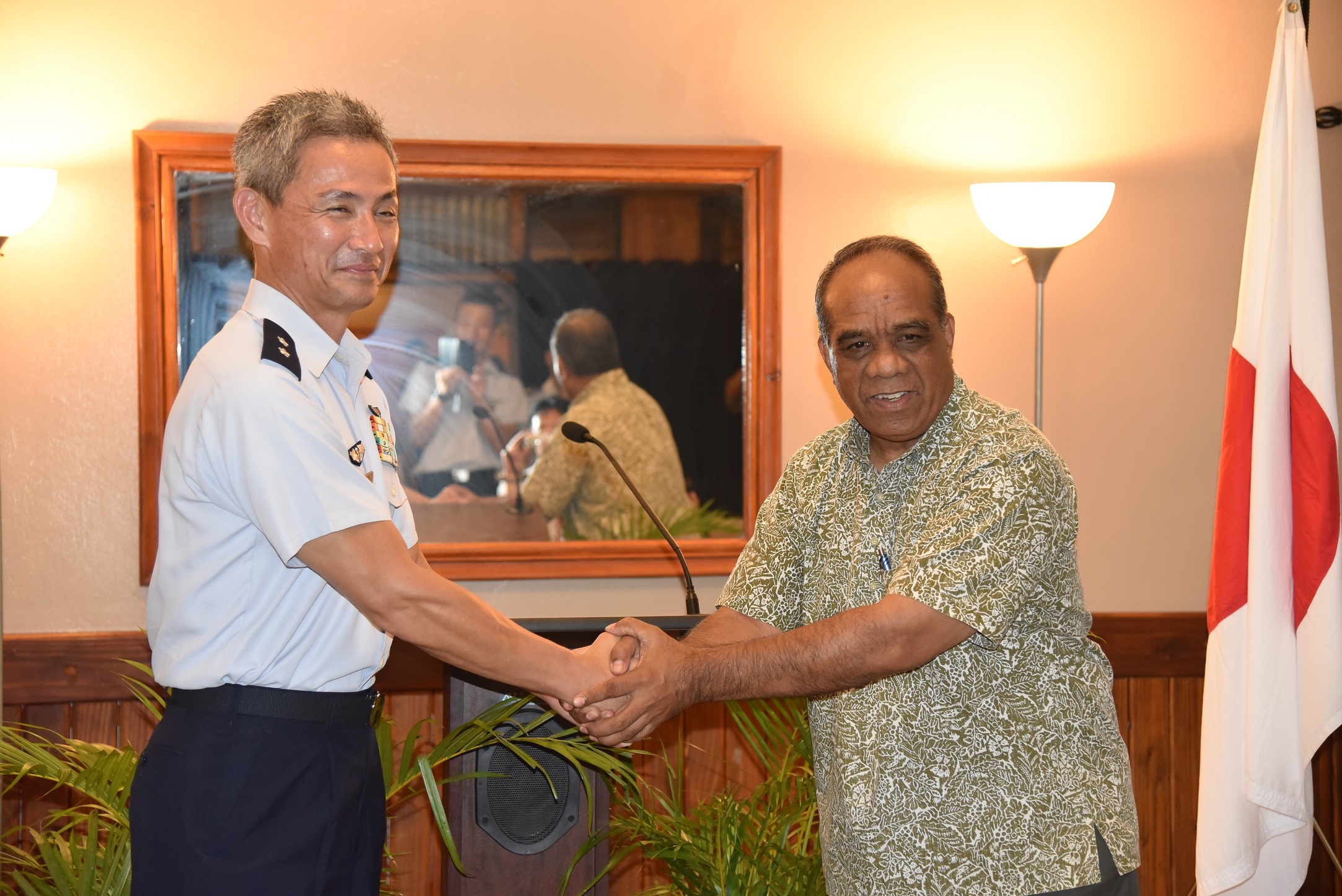 On October 11th 2019, a 14 member delegation of the Japan Self-Defense Forces (JSDF) led by Major General Imaki Koji arrived Pohnpei by aircraft U-4. The JSDF visited the FSM. H.E. Mr. Sobashima Hidenobu, Ambassador designate of Japan, Mr. Sugiyama Koji, Deputy Chief of Mission of the Embassy of Japan, H.E. Mr. Robert Riley, the U.S. Ambassador, Ms. Richter, the U.S. Defense Attaché, and among others welcomed them at the airport upon their arrival.