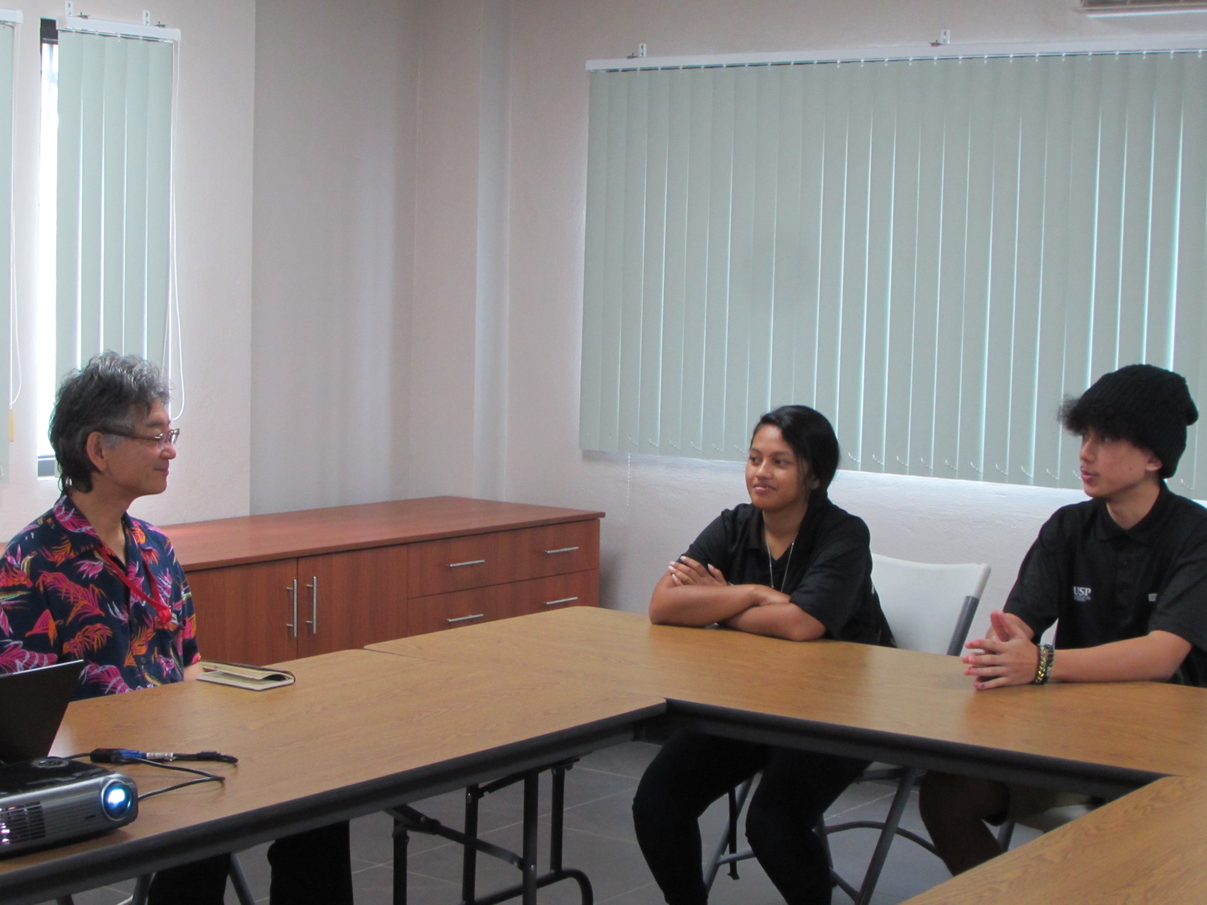 1月15日(水),対日理解促進交流プログラム「JENESYS 2019」に参加し帰国した青年男女2名が日本大使館を来訪し側嶋大使に同プログラム参加の報告を行いました。JENESYSとは21世紀東アジア青少年大交流計画(Japan-East Asia Network of Exchange for Students and Youths)として発足した対日理解促進交流プログラムで,2019年度においては,ミクロネシア連邦から5名の学生が同プログラムに参加しました。