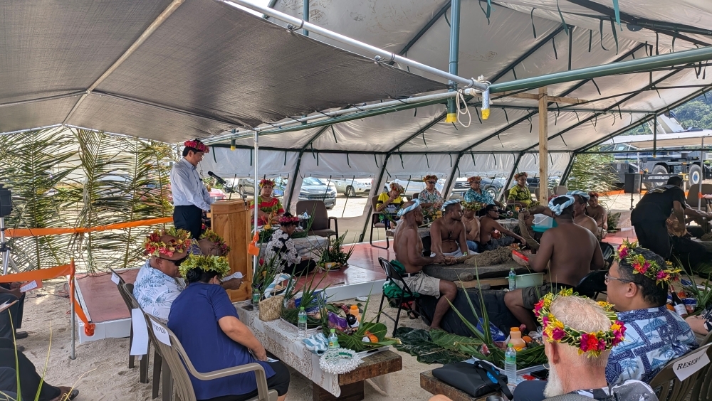 式典には、ポンペイ州の伝統的リーダーをはじめ、ロバート外務大臣、アピス運輸・通信・インフラ大臣、ジョセフ・ポンペイ州知事、渡邉JICAミクロネシア支所長らが出席し、ミクロネシア側の参加者は、ポンペイ港拡張工事の重要性及びミクロネシア連邦の人々に対する日本政府の支援に対して感謝の意を表しました。