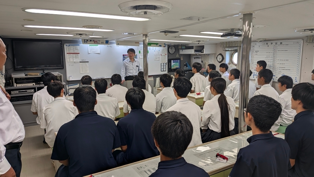 籠宮大使は、学生達に歓迎の言葉を贈り、現地の学生との交流に期待を寄せました。学生達は、マドレニウム高校の学生とのスポーツ交流や同高校学生を実習船やいづの見学に招待し、市街地散策などを行った後、再び日本に向けて航海を続けます。