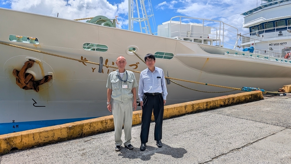 10月16日、籠宮大使は、乗船実習の途中、当国を訪れていた焼津水産高校の実習船「やいづ」を訪船しました。焼津水産高校の学生達は毎年、航海実習でミクロネシアのポンペイ港に寄港しており、9月25日に日本を出港し、一本釣り漁業の実習をしながら太平洋を航海し、10月16日にミクロネシアのポンペイ港に到着しました。今年は海況にも恵まれ、またかつおの漁獲調査も豊漁で予定より早く終了したとのことです。