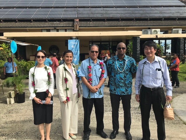 右より; 国連開発計画北太平洋事務所副常駐代表グルバホル・ネマトバ、 ロースN.ナカナガ財務大臣、籠宮大使、二等書記官 富田峻平