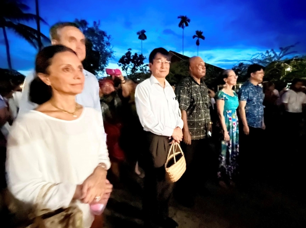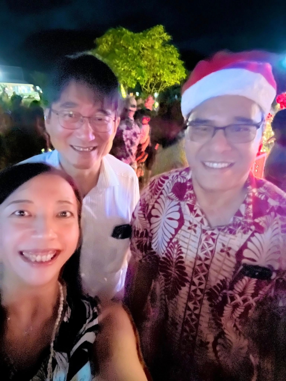 On December 2, 2025, Ambassador Kagomiya and his wife Kumiko attended the Christmas Lighting Ceremony held on the grounds of the President’s Office and National Convention Center which were hosted by the Office of the President of the FSM. Government officials, community members, and members of the diplomatic corps enjoyed the event.