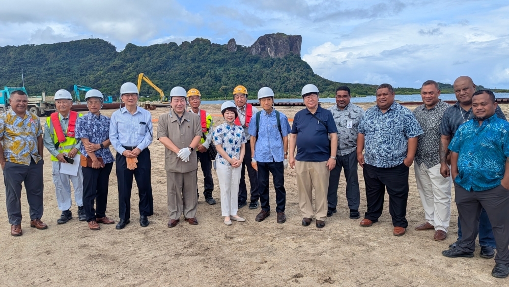 1月9日、日本の支援により実施中のポンペイ港拡張計画の現場を視察しました。同計画は日本からミクロネシア連邦への支援として過去最大のもので、現在工事中です。視察では、ポンペイ港を管理するポンペイ港湾局のゼネラルマネージャーより日本の支援への感謝が述べられたほか、工事を請け負う日本の若築建設株式会社や工事を管理する株式会社エコーより事業概要の説明があり、議員団からは工事の進捗等について質問がされ、意見交換を行いました。