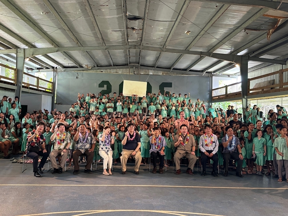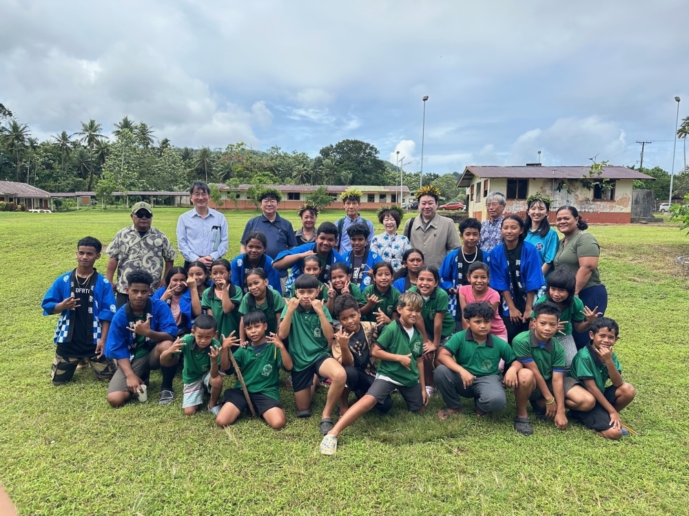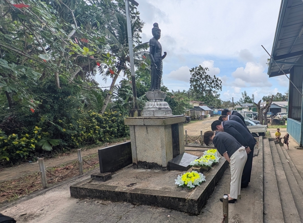 その他、ODA調査団は過去に日本が支援したインフラ施設や学校の視察を行うとともに、日本の委任統治時代にポンペイ(ポナペ)島の開発と文化の向上に尽くしてこの島で物故された人及び太平洋戦争で亡くなられた人々の冥福を祈り建立されたポナペ会慰霊碑を訪れ、慰霊・献花を行いました。