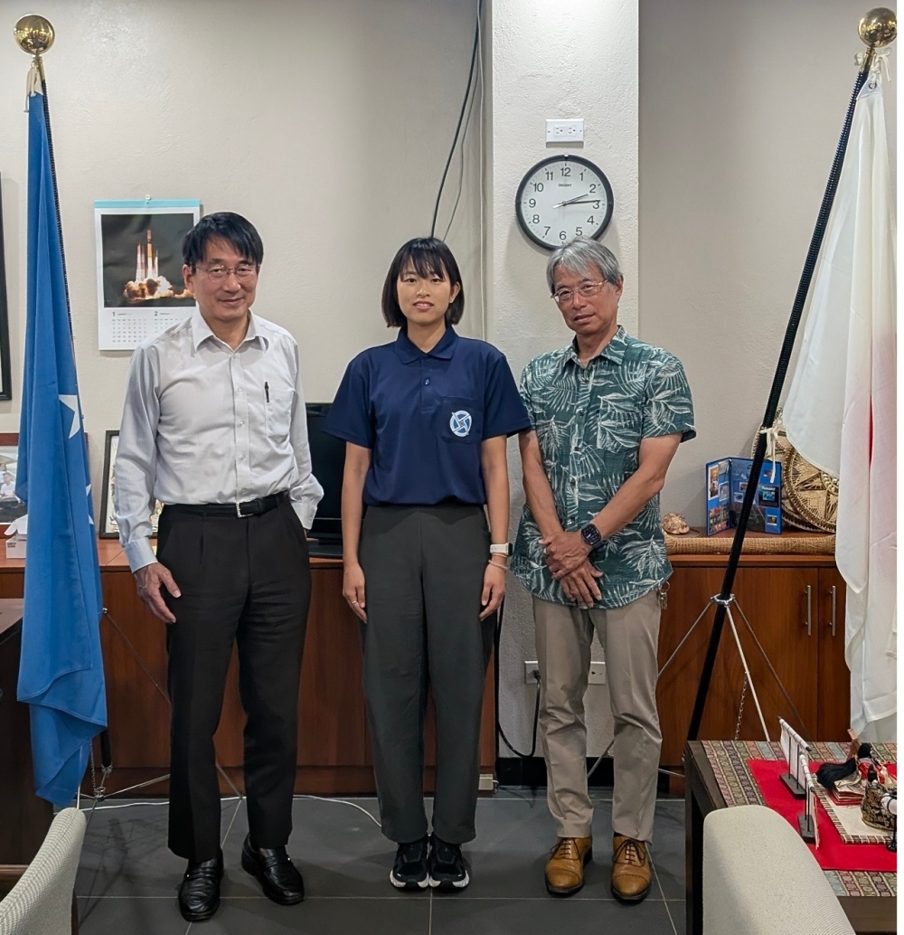 On January 12, Ambassador Kagomiya received a courtesy call from Ms. Minami Haga, a JICA Overseas Cooperation Volunteer (JOCV) newly dispatched to the Federated States of Micronesia (FSM) as the second batch for the fiscal year 2025. Ms. Haga will be assigned to Saladak Elementary School in Pohnpei State, where she will teach mathematics and physical education. Ms. Haga has extensive experience living abroad, including working at schools in Viet Nam and Indonesia, and is expected to achieve great results in her activities in the FSM by utilizing these experiences.