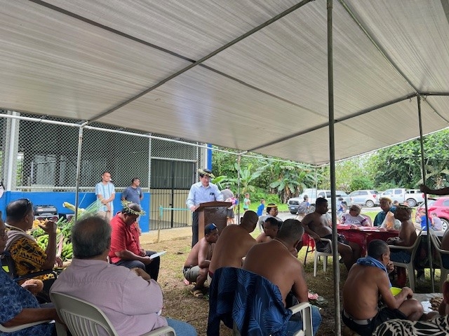 Ambassador Kagomiya extended his sincere gratitude to the warm welcome by the U Municipality. In his remarks, he stated that this gymnasium is a facility necessary for a vibrant school life, empowering youth in both physical and mental well-being, shaping values, and building a broad perspective through various school activities and then nurturing future leaders of the country. Ambassador also emphasized that Japan stands strong to continue working with the Federated States of Micronesia (FSM) to promote education, health, human development, and human security.