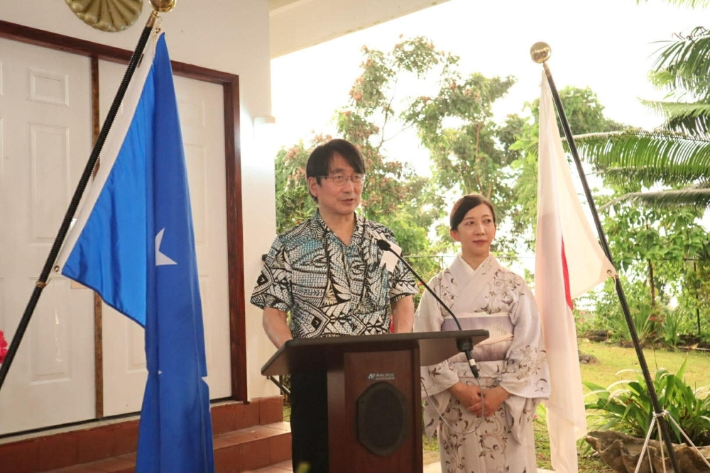 籠宮大使は、挨拶の冒頭で、天皇陛下が66歳の御誕生日をお迎えになられることを祝賀しました。日本とミクロネシア連邦(FSM)が緊密な歴史的つながりを持つ友好国で、自由や法の支配、民主主義、人権、平和といった基本的価値を共有することを強調した上で、両国の友好関係を更に強化していきたい旨述べました。また、ポンペイ港拡張工事、東部ミクロネシア海底ケーブルプロジェクト(日米豪共同プロジェクト)、チューク環礁における油漏れ事故被害に対する緊急援助、妊産婦保健医療サービス強化プロジェクト(UNFPA連携)、安全な水供給改善プロジェクト(IOM・UNICEF連携)、日本地雷処理を支援する会(JMAS)及びJICAボランティアの活動等をはじめとするFSMに対する日本の支援、またこの1年間の日本とFSM間の要人往来等における二国間関係の発展について述べました。